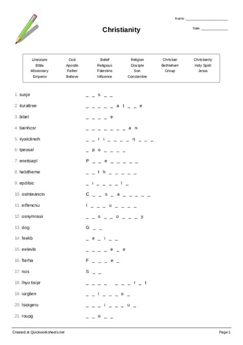 The Christianity Worksheet PDF also includes a section on the practices of Christianity. It explains the core practices of Christianity and how they are practiced today. This is a great resource for those wanting to learn more about Christianity and its practices. It also includes information on the different denominations of Christianity and how they differ in their practices.